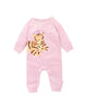 This warm and cozy lilac velour raglan sleeve romper features a side front neck opening, a princess tiger front and back side print, and a concealed press stud crotch opening for ease of nappy changes and dressing your little one making it a great winter wardrobe staple.