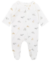 Made from 100% GOTS Certified Organic Cotton and Dyes making this long sleeve romper super soft and comfy on baby's skin. Featuring a cute safari animal print, enclosed feet, and a zip front opening makes it the perfect basic for your baby's wardrobe .