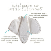 Earlybirds Isolette Suits are made from 100% soft cotton rib and are completely free of internal seams for maximum comfort. Designed with the assistance of neonatal specialists for the NICU environment, the gentle crossover layette design provides ease of dressing which helps to conserve baby's energy.