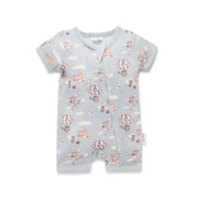 Let your little one drift into a world of sky-high adventures with our Flying Friends Zip Romper. Featuring a delightful all-over print of playful animals soaring through the clouds in vintage planes and whimsical hot air balloons, this romper brings imagination and comfort together in perfect harmony. Made from the softest GOTS-certified organic cotton it's gentle on delicate skin and kind to the planet. A two-way zip makes changes quick and easy, while short sleeves and legs keep bub cool and comfy during warmer days.