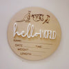 Specifications: This birth announcement disc is laser carved on a 3mm natural plywood and has a 3D effect. Approx 14.5cm Width